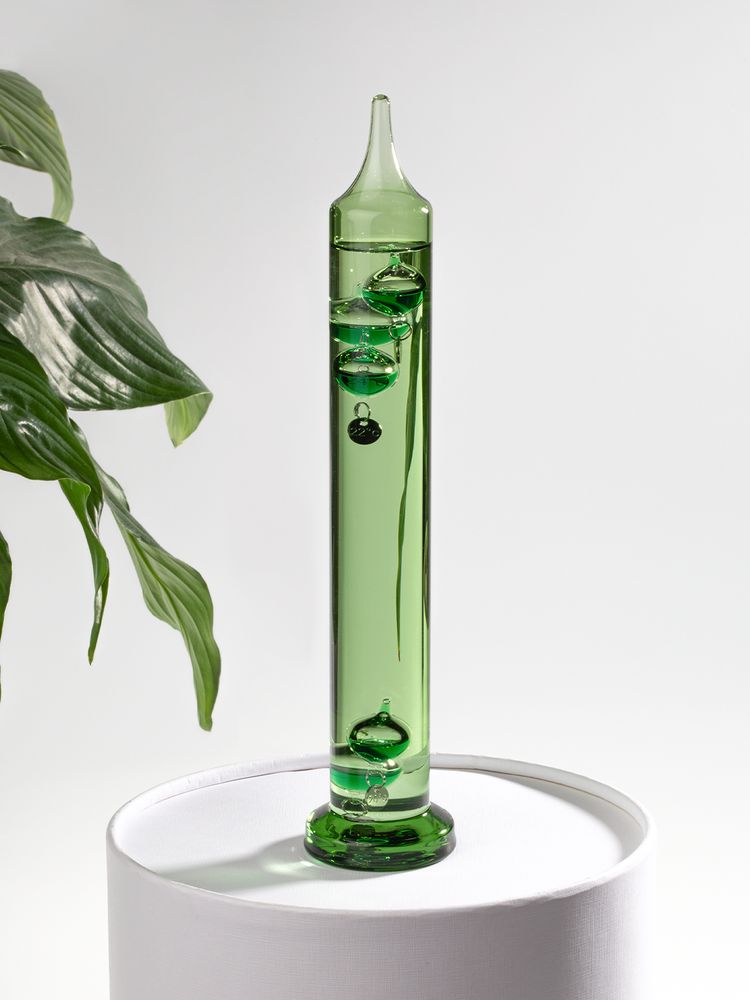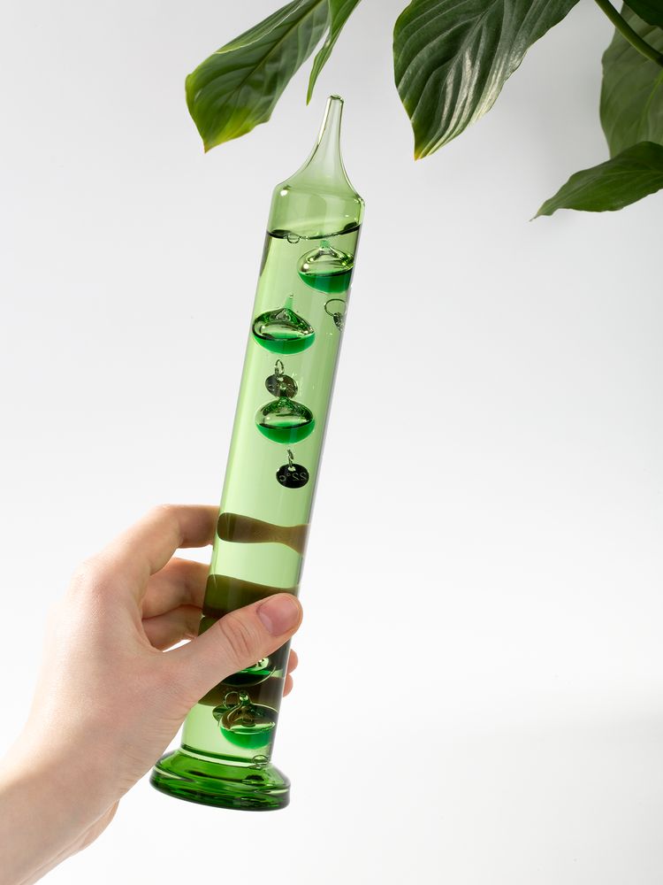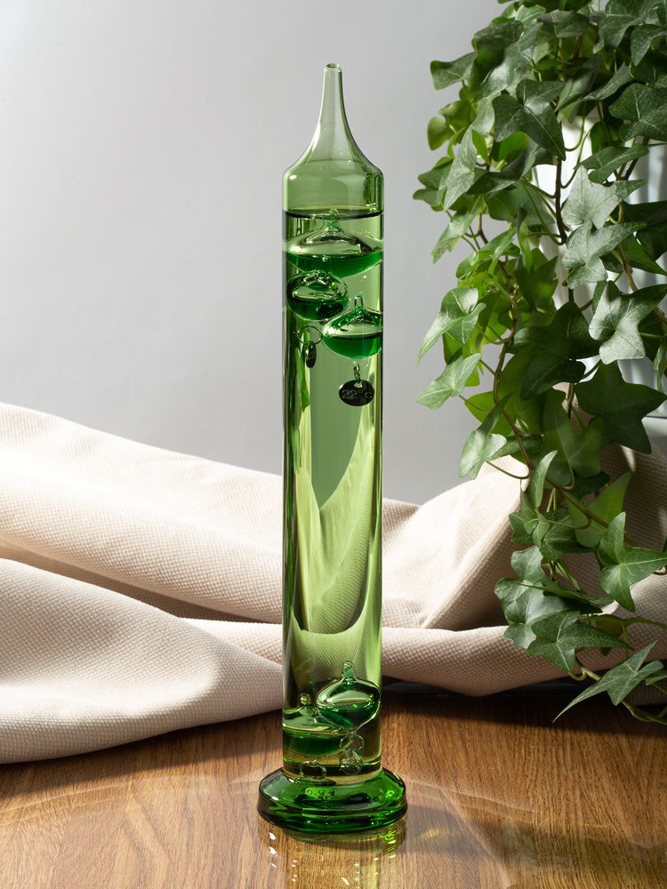 Термометр Галилео в цветном стеклянном корпусе с прочным плоским основанием — это не только интересный и полезный сувенир, но и элемент современного дизайна.