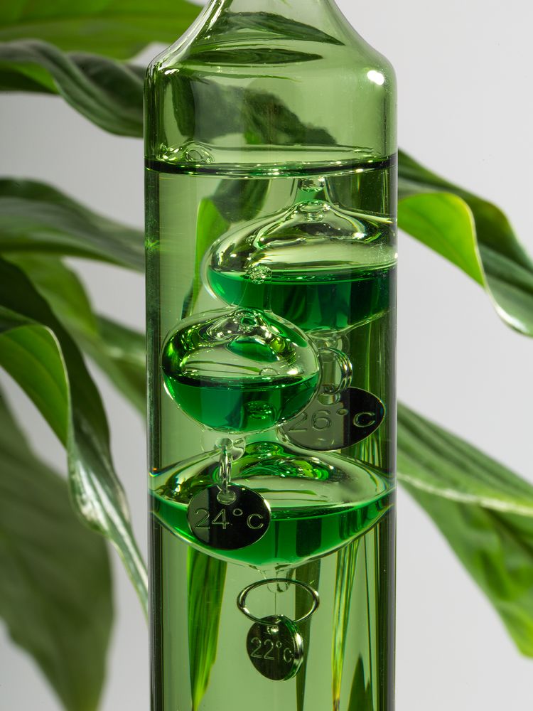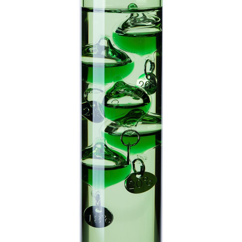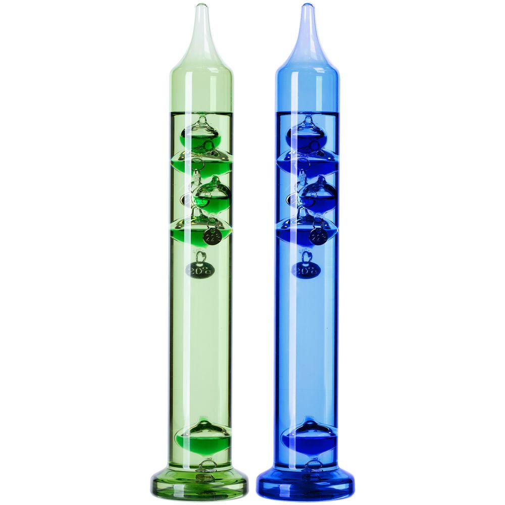 Любопытный термометр, изобретенный великим Галилео Галилеем, который первым обнаружил, что плотность жидкости увеличивается при снижении температуры и уменьшается при ее повышении.