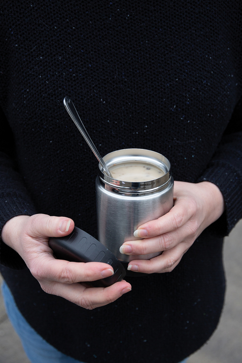 Герметичный вакуумный контейнер для еды сохранит температуру горячих блюд до 5 часов, холодных – до 15 часов. Внутренняя стенка выполнена из нержавеющей стали марки 304, внешняя – из нержавеющей стали марки 201. Объем: 300 мл. Длина 9 см., ширина 9 см., высота 13 см., диаметр 8,5 см.