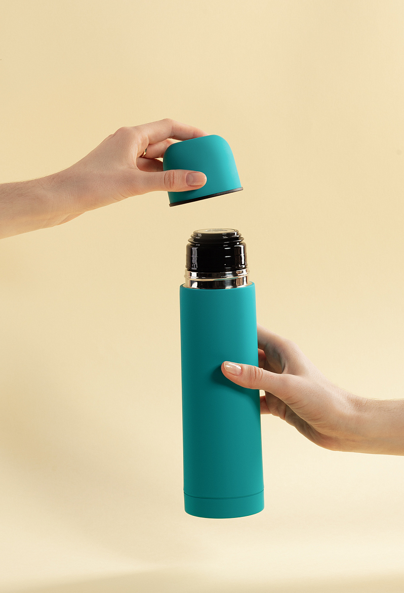 Термос "Крит" 500 мл, покрытие soft touch, бирюзовый можно заказать в нашей компании по самой доступной цене от 1 009 рублей.