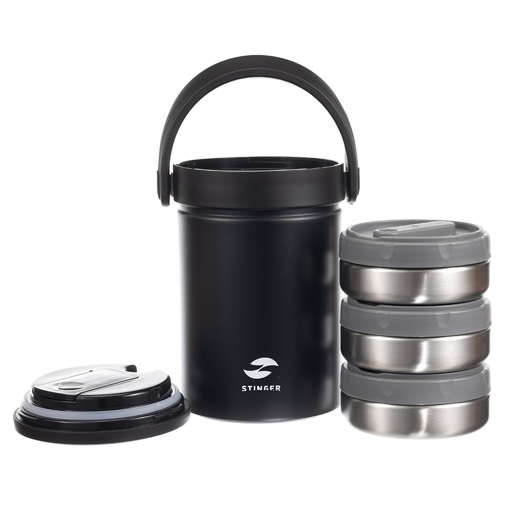 Термос ланч-бокс Stinger, 1,7 л, широкий, сталь, чёрный, три контейнера, 16,1 x 14,9 x 21,5 можно заказать в нашей компании по самой доступной цене от 4 220 рублей.