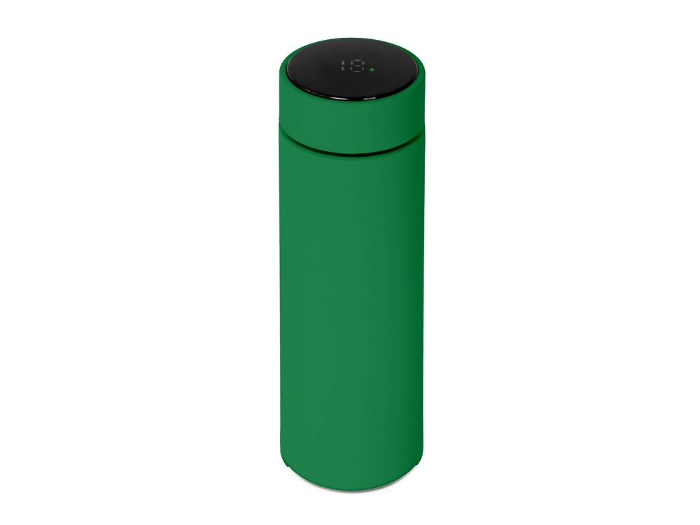 Термос из нержавеющей стали, покрытый цветным soft touch, с крышкой, в которой встроен термометр и LED дисплей, показывающий температуру внутри термоса. Объем: 500 мл. Упаковка: каждый термос в крафт коробке.