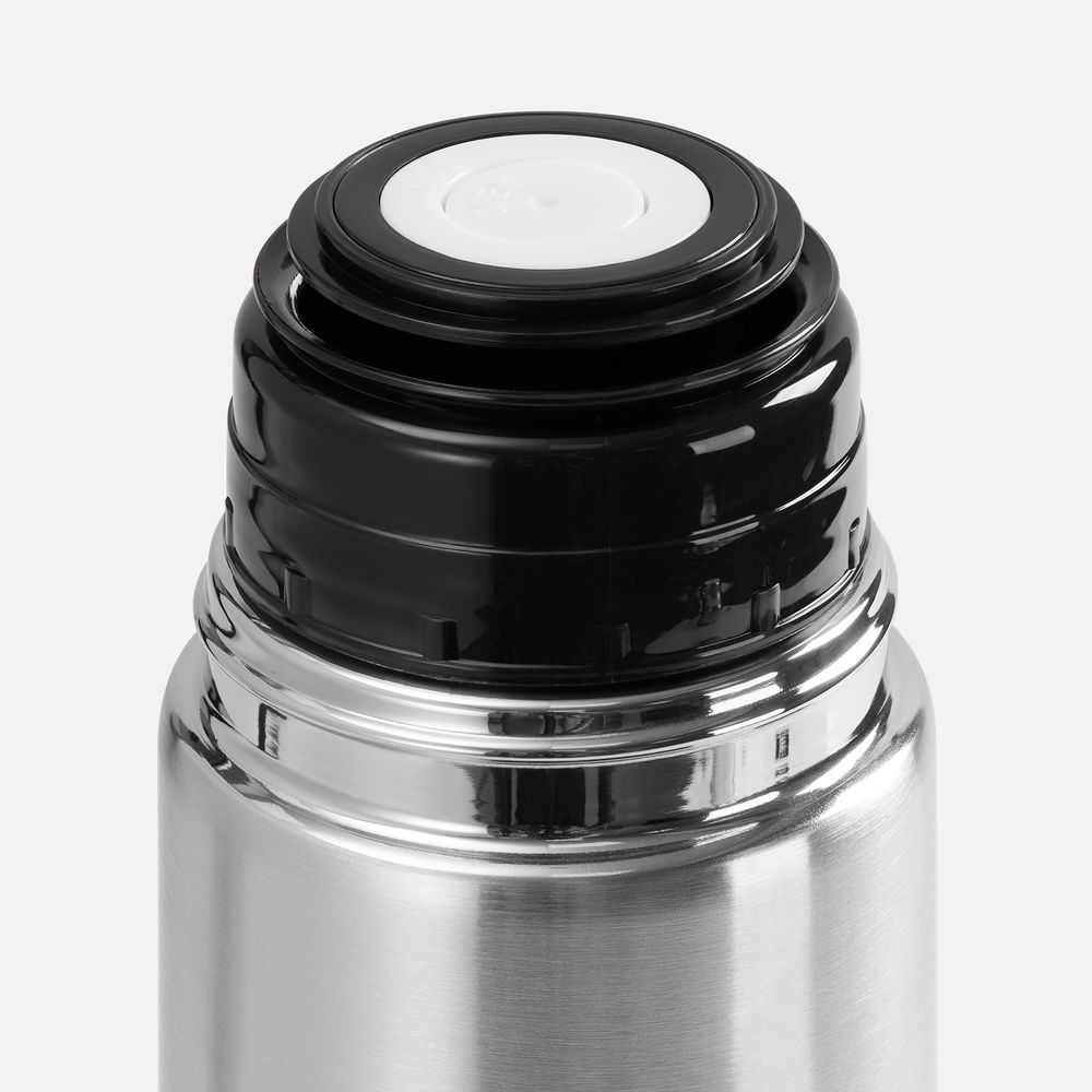 Двухслойная вакуумная конструкция из нержавеющей стали внутри и снаружи с завинчивающейся пробкой с клапаном.
