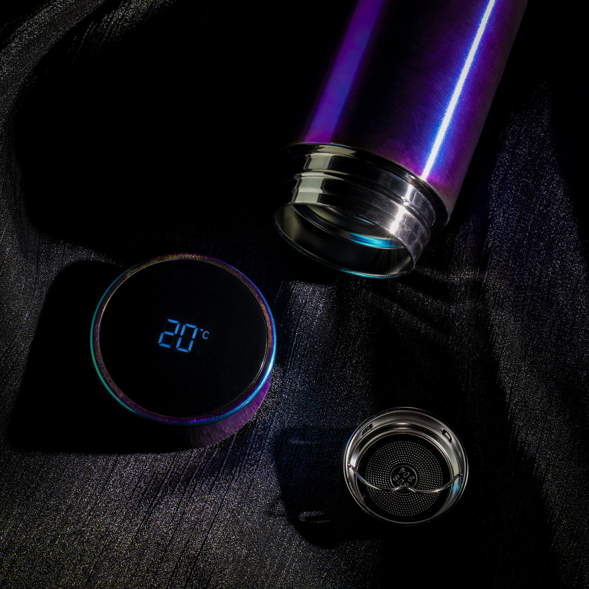 На крышке находится сенсорный дисплей, который показывает температуру напитка.