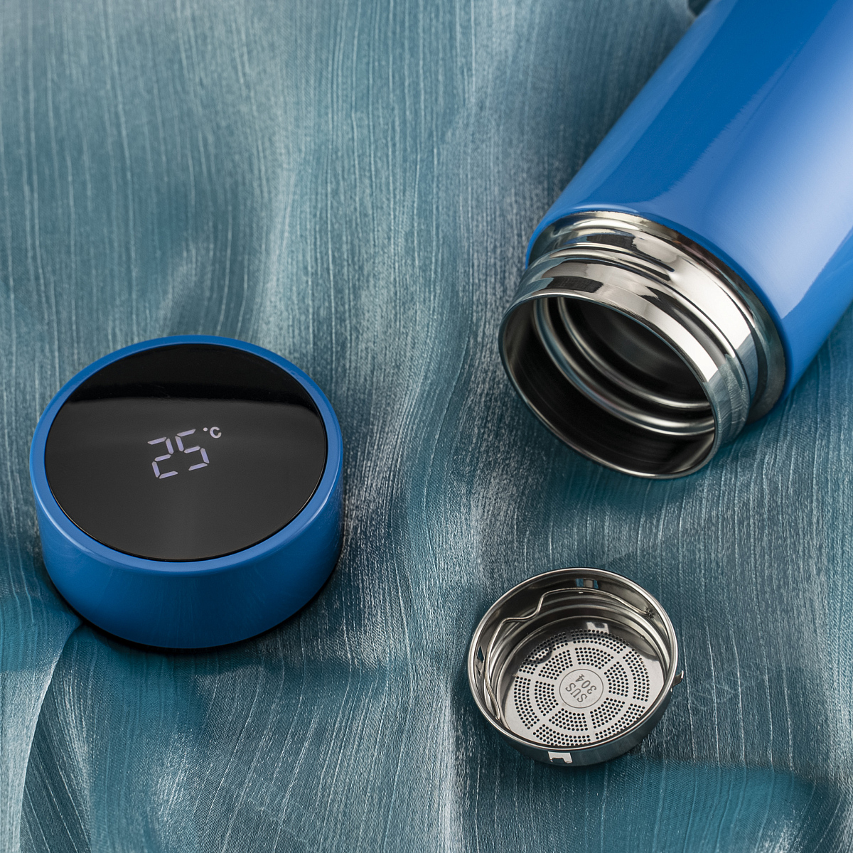 На крышке находится сенсорный дисплей, который показывает температуру напитка.