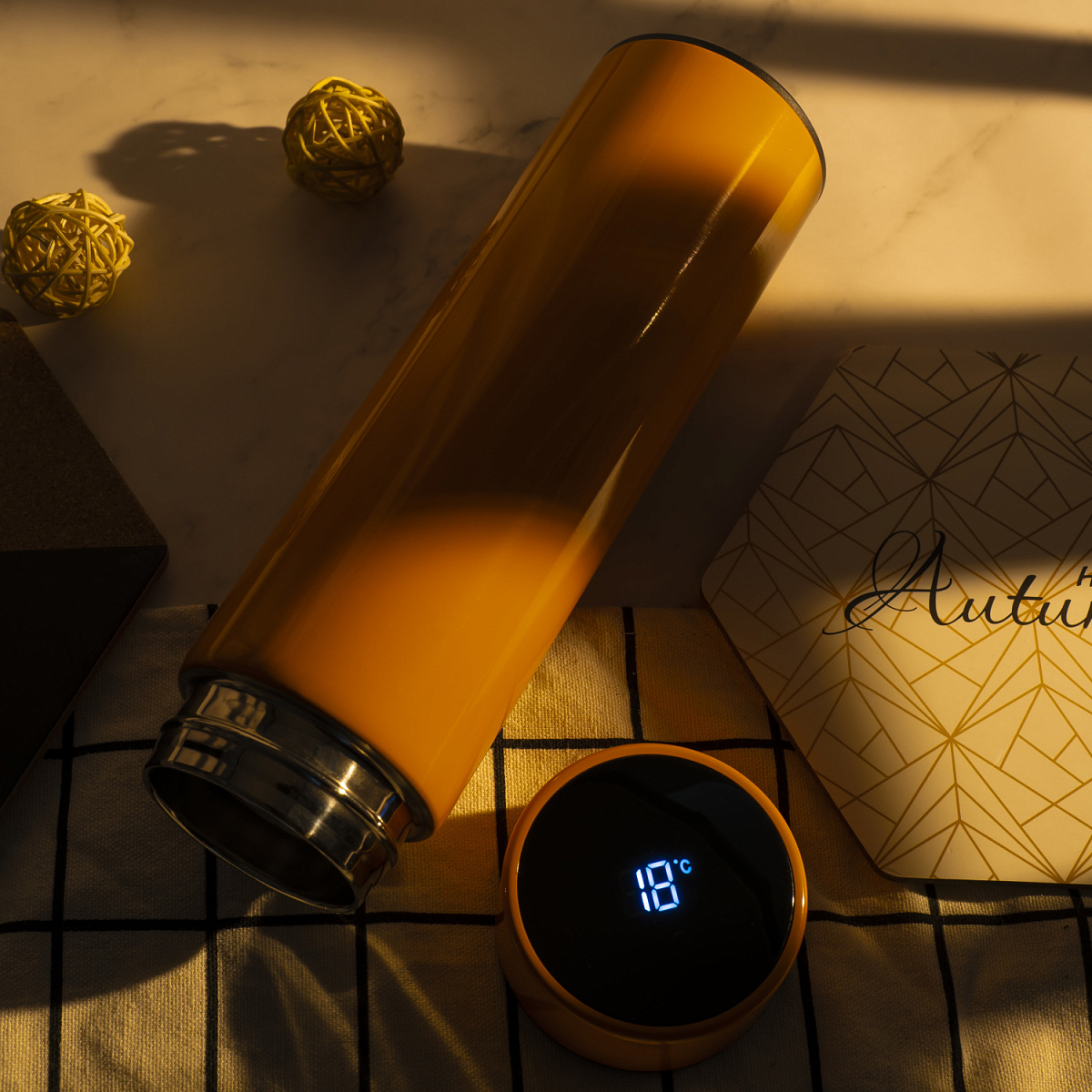 На крышке находится сенсорный дисплей, который показывает температуру напитка.