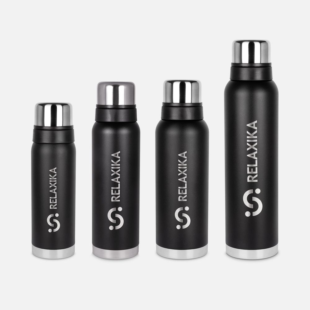 Термос Relaxika 1200 со стикерпаком, черный можно заказать в нашей компании по самой доступной цене от 2 655 рублей.
