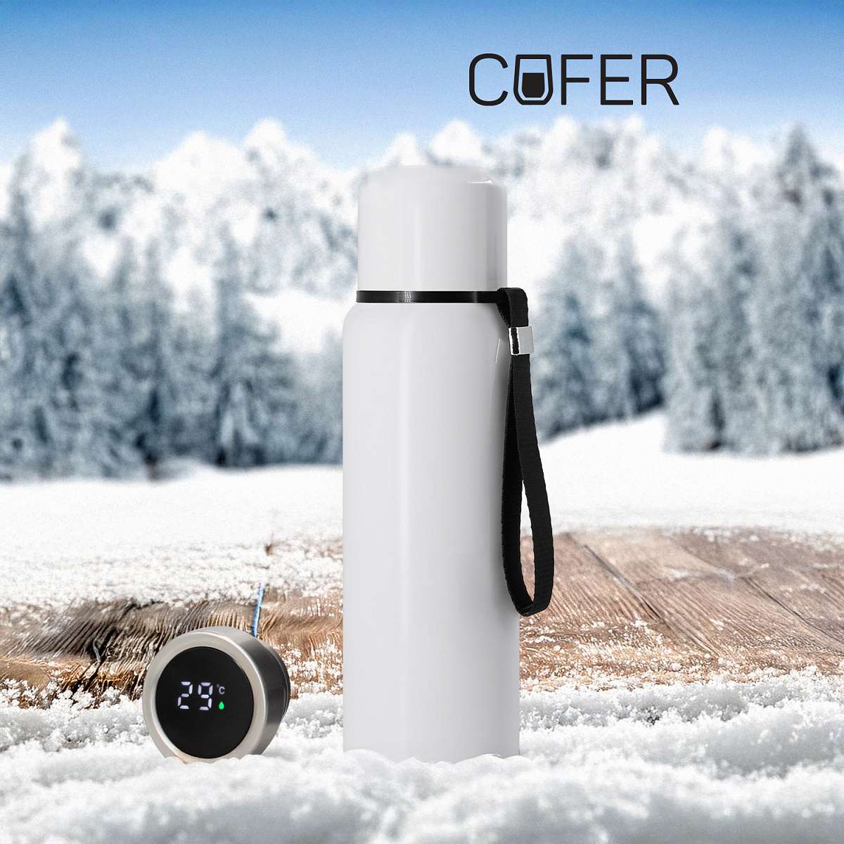 Термос S-TRAVEL NEW — обновленный хит бренда COFER c глянцевым покрытием является воплощением минималистичного дизайна. На крышке находится сенсорный дисплей, который показывает температуру напитка.