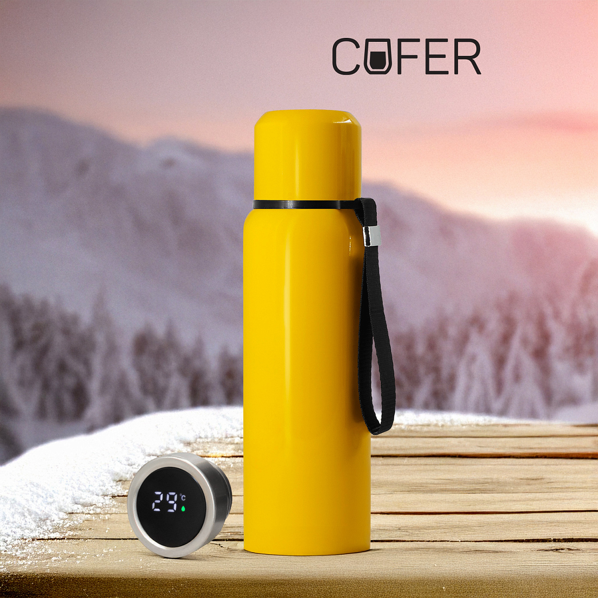 Термос S-TRAVEL NEW — обновленный хит бренда COFER c глянцевым покрытием является воплощением минималистичного дизайна. На крышке находится сенсорный дисплей, который показывает температуру напитка.