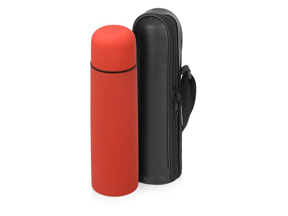 Универсальный термос с мягким прорезиненным покрытием софт-тач. Удобно и приятно держать в руке. Благодаря вакуумной изоляции и двойным стенкам сохраняет напитки горячими 24 часа. Герметичный клапан открывается и закрывается по легкому нажатию. Термос поставляется в дорожном чехле из искусственной кожи.