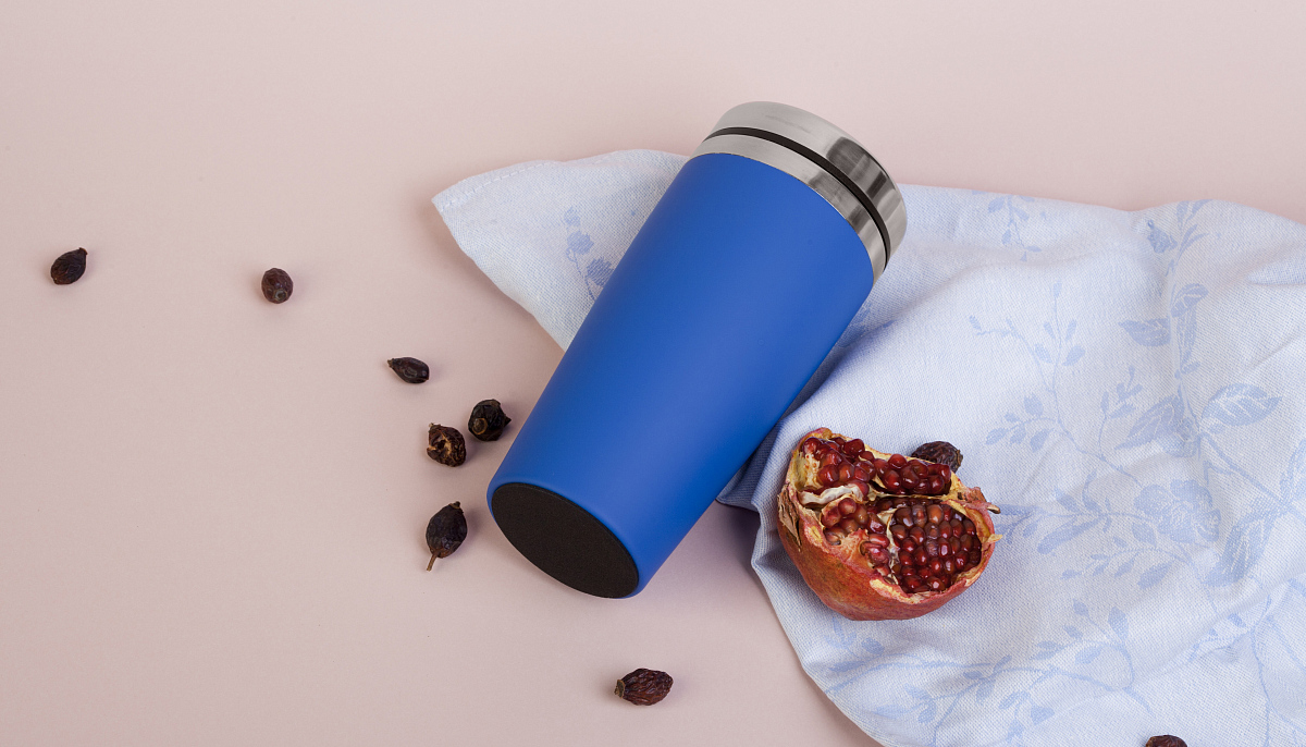 Термостакан "Эльбрус", покрытие soft touch, синий можно заказать в нашей компании по самой доступной цене от 1 169 рублей.