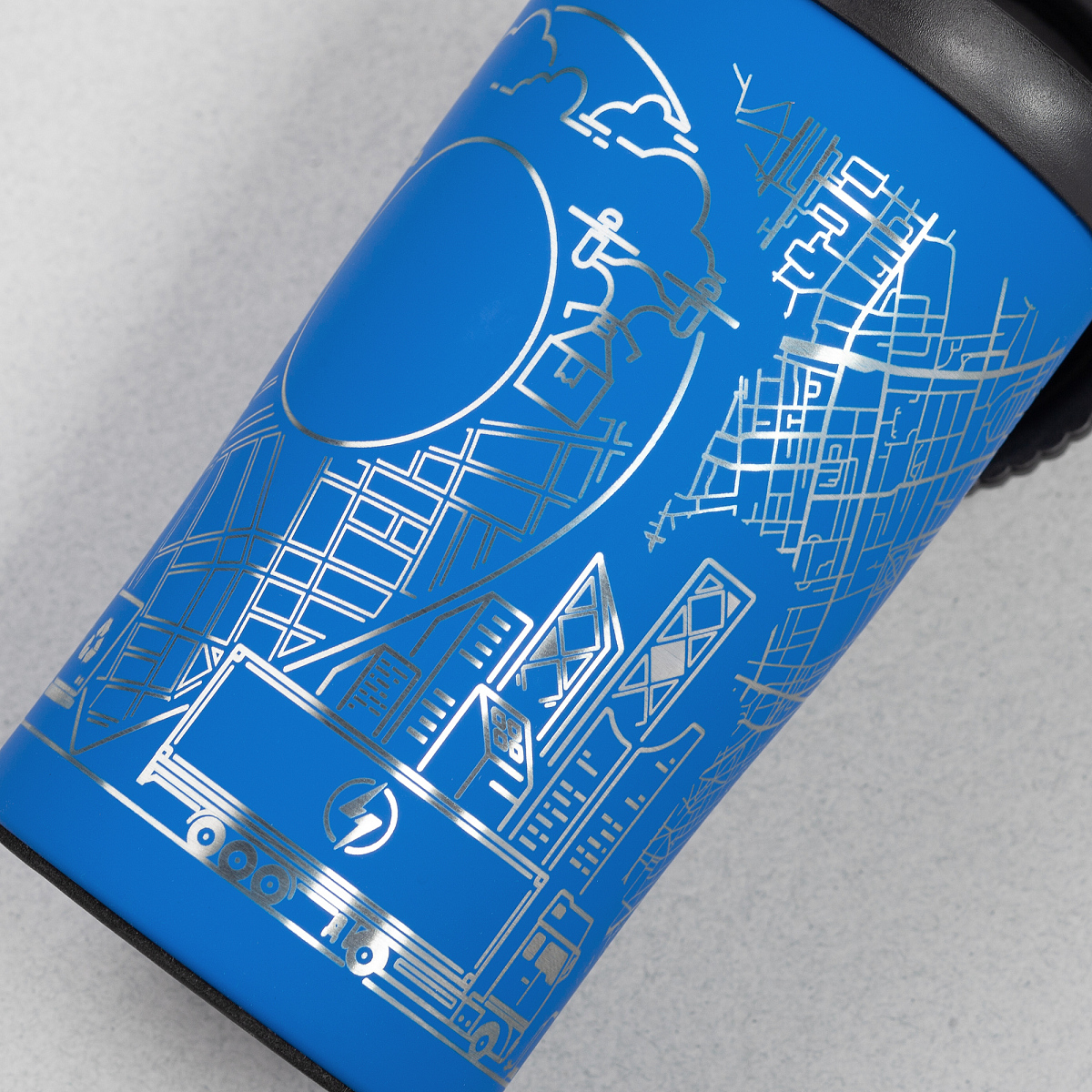На корпусе стакана выполнена круговая гравировка с тематическим дизайном «Логистика» - готовый подарок коллегам, партнерам или друзьям из сферы доставки.