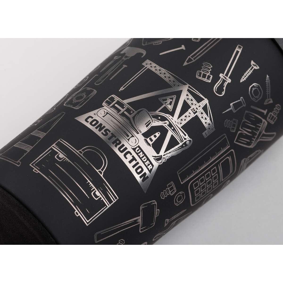 Термостакан в покрытии soft touch с тематическим дизайном «Строитель» - готовый подарок коллегам, партнерам или друзьям из сферы строительства.
