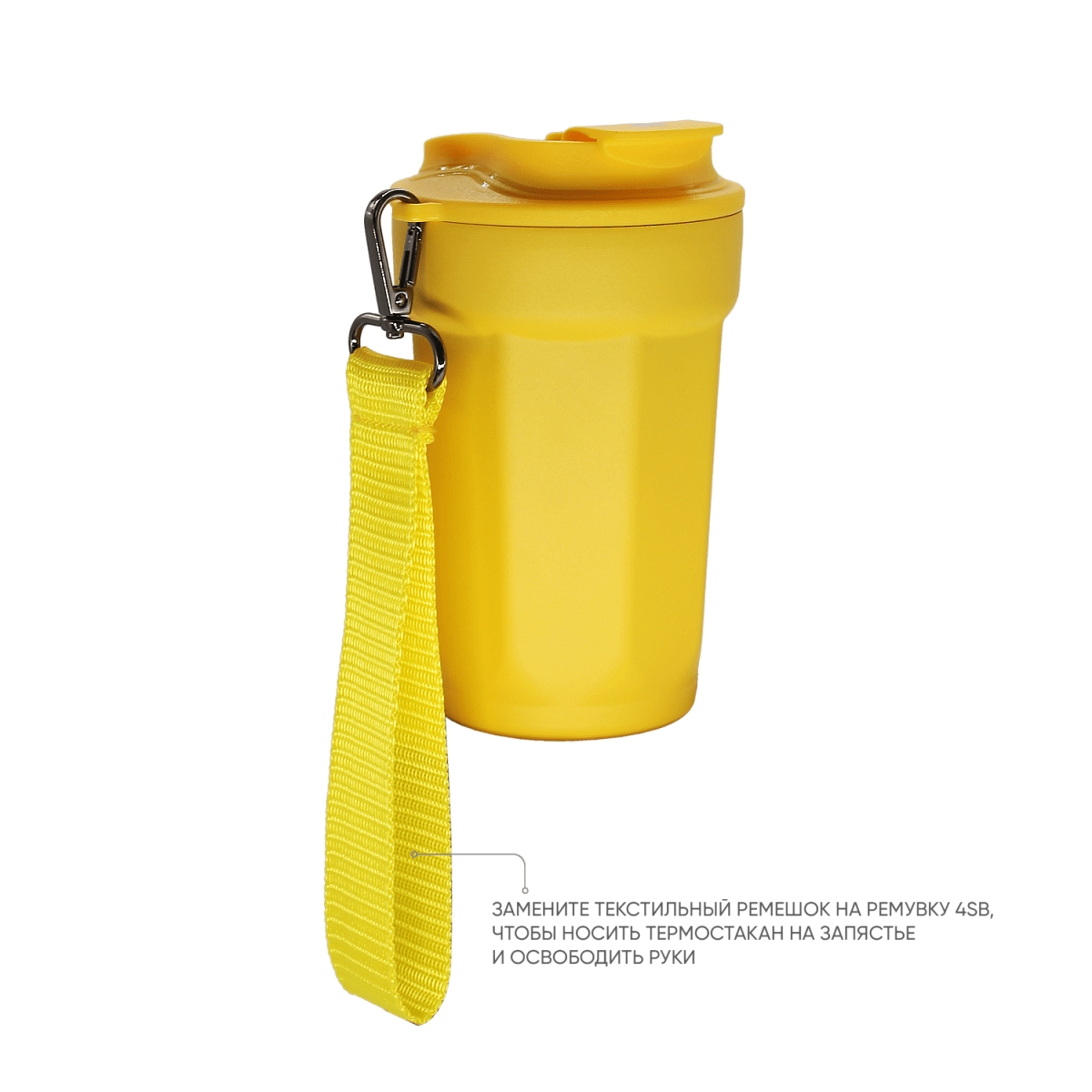 Для максимального удобства использования термостакан оснащён съемным текстильным ремешком для переноски. Ремешок в комплекте может быть заменен на трендовую ремувку 4sb flat, на которую можно разместить логотип или слоган компании.