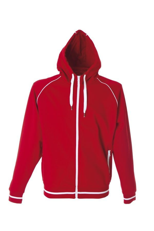 Основная ткань: цвет, близкий к Pantone Standart white Толстовка из полотна "пике" с водоотталкивающей пропиткой. Обратные контрастные молнии для предотвращения попадания влаги внутрь. Рукава-реглан. Декоративная тесьма по горловине спинки. Капюшон на подкладке с небольшой стойкой. Контрастные канты и шнур в капюшоне. Два передних кармана на молнии. Манжеты и низ изделия обработаны плотным рибом 1*1 .