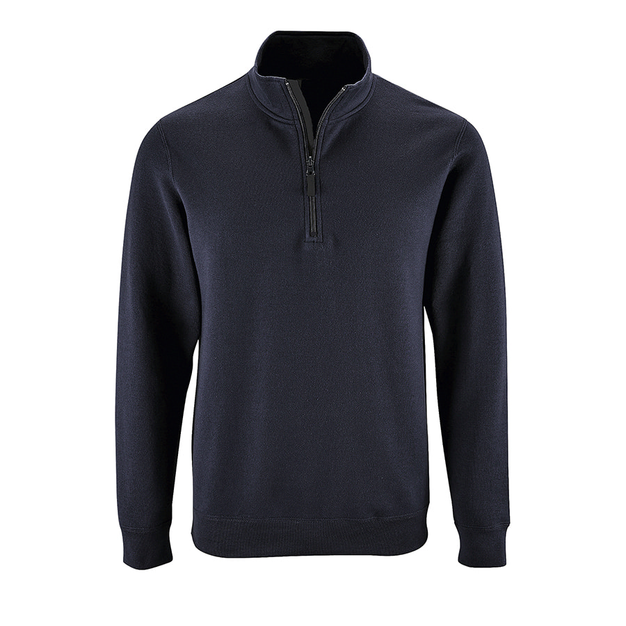 Мужской свитшот с начесом и воротником-стойкой на молнии. Манжеты и низ изделия обработаны резинкой. Внутренняя планка контрастного цвета. Лейбл с размером находится во шве горловины, лейбл производителя вшит в боковом шве изнутри.