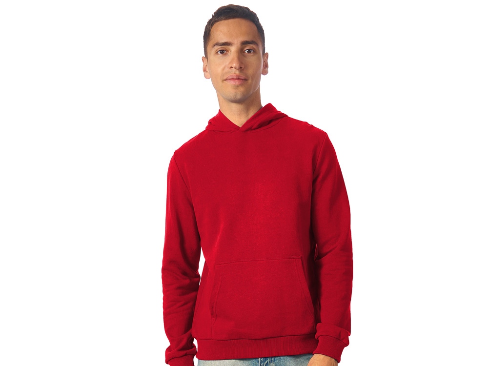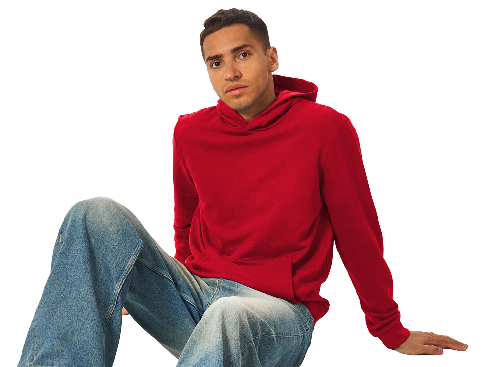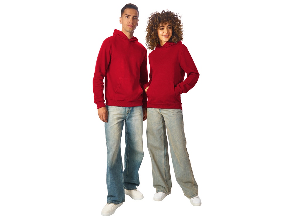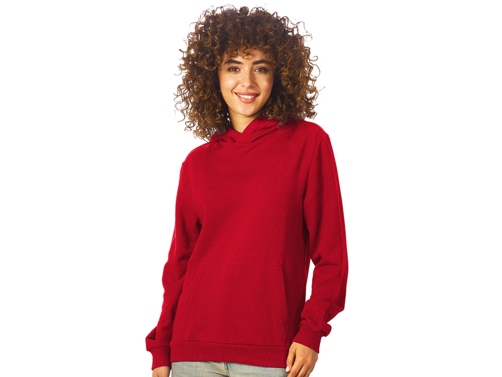 Толстовка с капюшоном (худи) из плотного хлопкового 3х ниточного футера. В капюшоне подкладка в тон, а горловина спинки дополнительно укреплена тесьмой с выделкой елочка. Капюшон без шнурков – ничего не отвлекает от вашего брендирования. Манжеты и низ изделия отделаны рибом 2х2. Глубокий комфортный карман кенгуру на полочке. Полотно из утяжеленного хлопкового футера внутри с петельками без начеса.