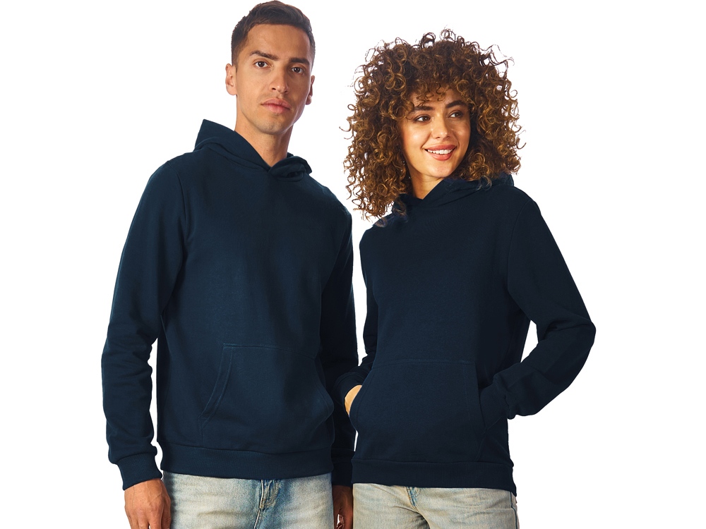 Толстовка с капюшоном (худи) из плотного хлопкового 3х ниточного футера. В капюшоне подкладка в тон, а горловина спинки дополнительно укреплена тесьмой с выделкой елочка. Капюшон без шнурков – ничего не отвлекает от вашего брендирования. Манжеты и низ изделия отделаны рибом 2х2. Глубокий комфортный карман кенгуру на полочке. Полотно из утяжеленного хлопкового футера внутри с петельками без начеса.