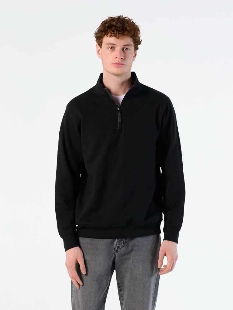 Толстовка с воротником-стойкой на молнии. Лейбл производителя в боковом шве изнутри, в шве горловины - только бирка с размером, что позволяет вам нанести свой логотип.