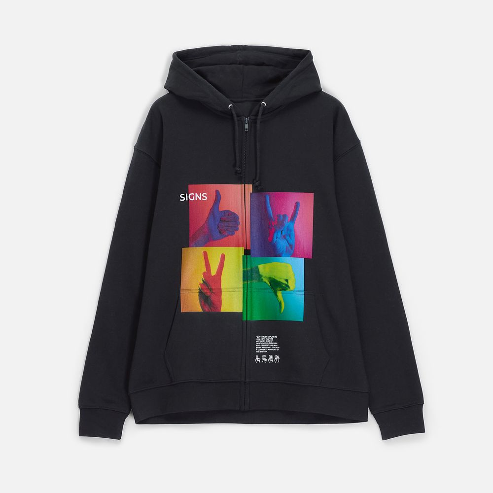Толстовка унисекс на молнии и с капюшоном выполнена из хлопка с добавлением переработанного полиэстера.
