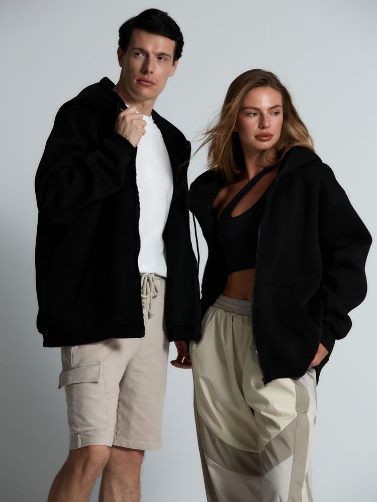 Толстовка унисекс оверсайз Zippy, черная можно заказать в нашей компании по самой доступной цене от 3 860 рублей.