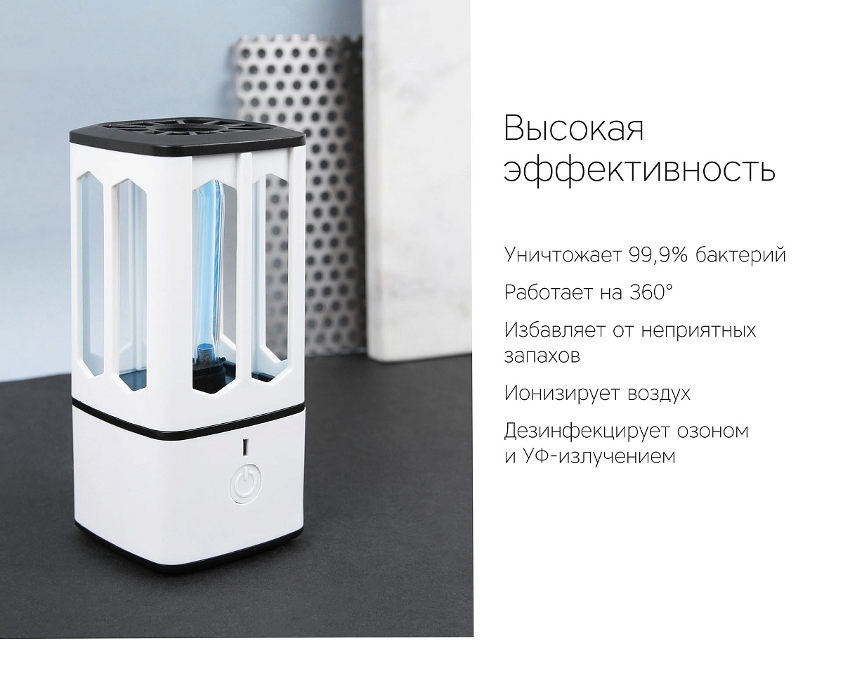 Особенности: 360º стерилизация; встроенный аккумулятор; озонатор воздуха; автотаймер 30 мин