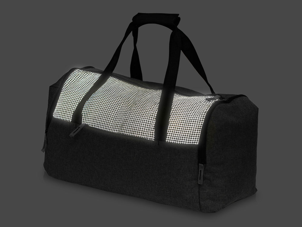 Благодаря вставке со светоотражающими элементами сумка будет заметна и обеспечит дополнительную защиту даже в темное время суток. Легка и очень вместительная, с наружным и боковым карманами на молнии. Отделение для хранения обуви с вентиляционным клапаном. Ручки фиксируются вместе застежкой -липучкой.