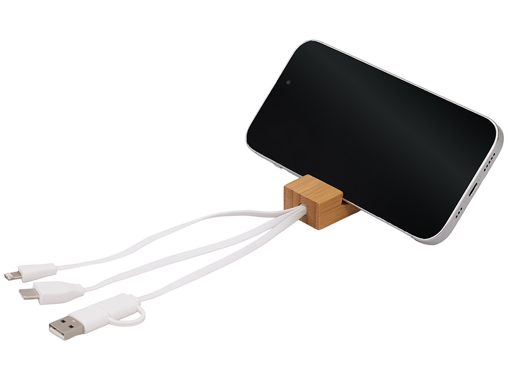Универсальный кабель с подставкой 4-в-1 Unicable — стильное и практичное решение для современного пользователя. Этот компактный аксессуар станет незаменимым спутником в вашем кармане, сумке или на рабочем столе. Поставляется в фирменной коробке bamboo collection.