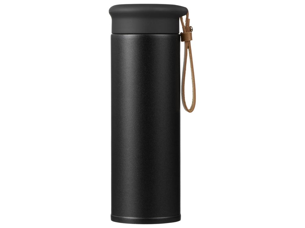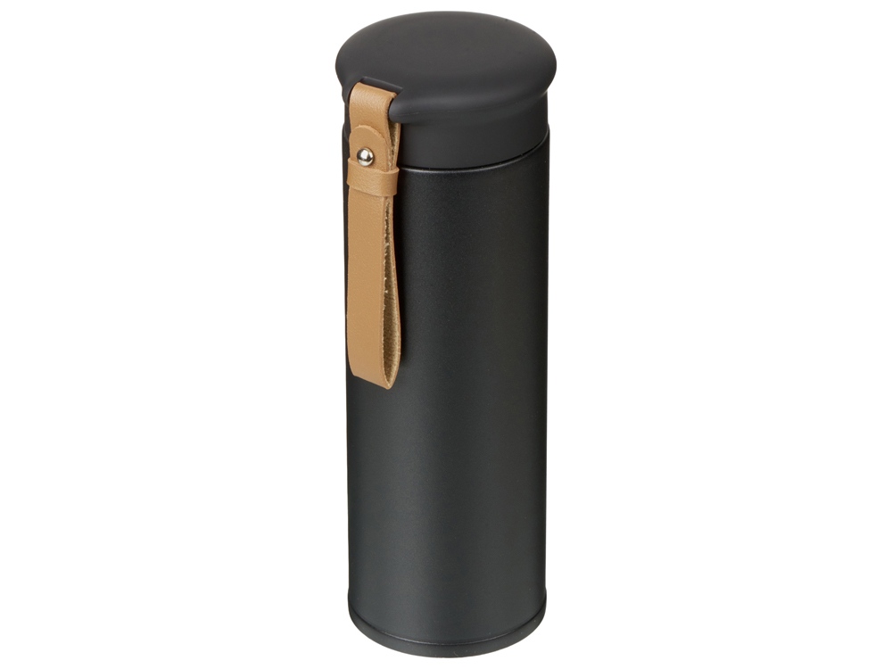 Термос герметично завинчивается на крышку, оснащенную съемным ремешком из качественной ПУ кожи. Крышка имеет прорезиненное покрытие, что создает интересное сочетание текстур в рамках одной модели. Корпус имеет элегантную рельефную поверхность с антискользящим эффектом.
