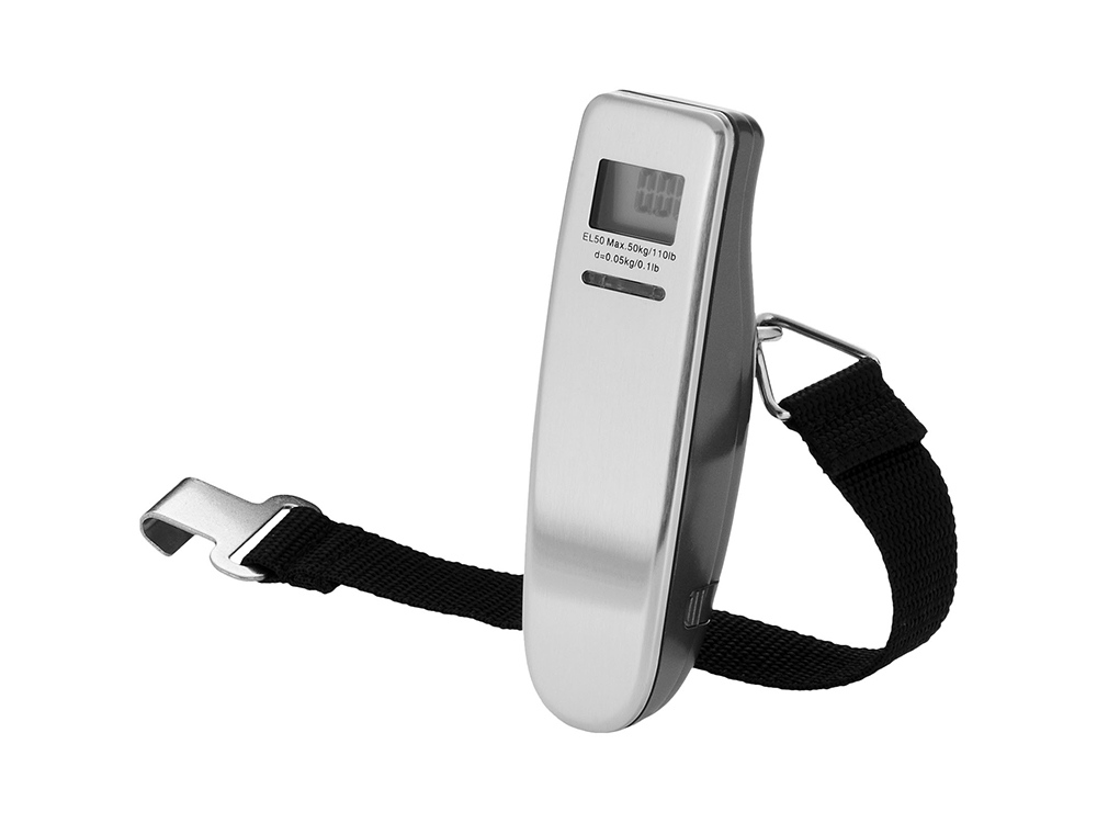 Цифровые весы для багажа Newark. Переносные цифровые весы для багажа. Небольшой размер удобен для ручной клади. Батарейки включены в комплект. АБС-пластик и металл.