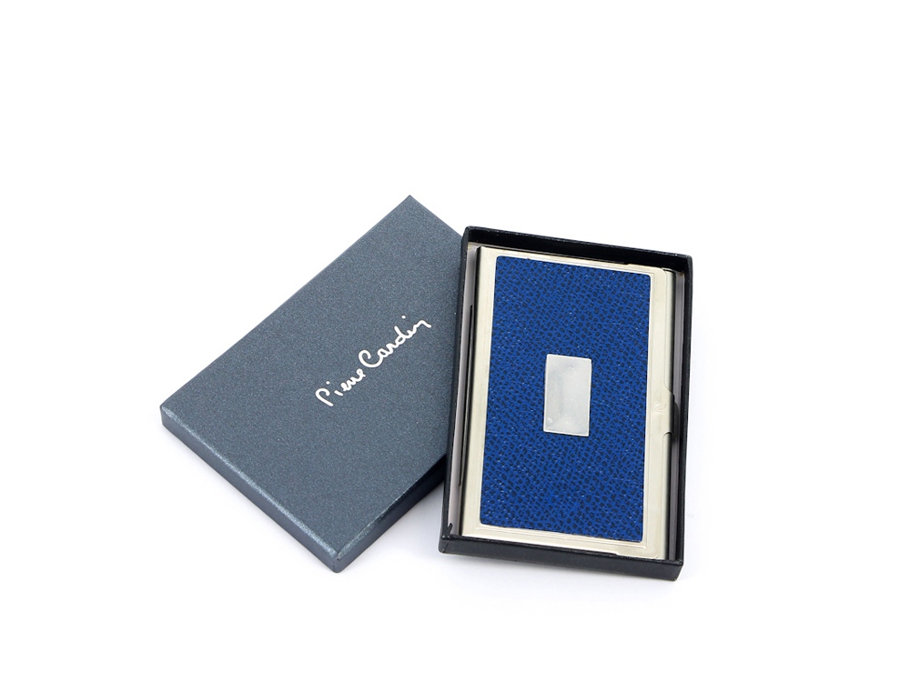 Визитница из металла с вставкой из искусственной кожи с местом для лого.