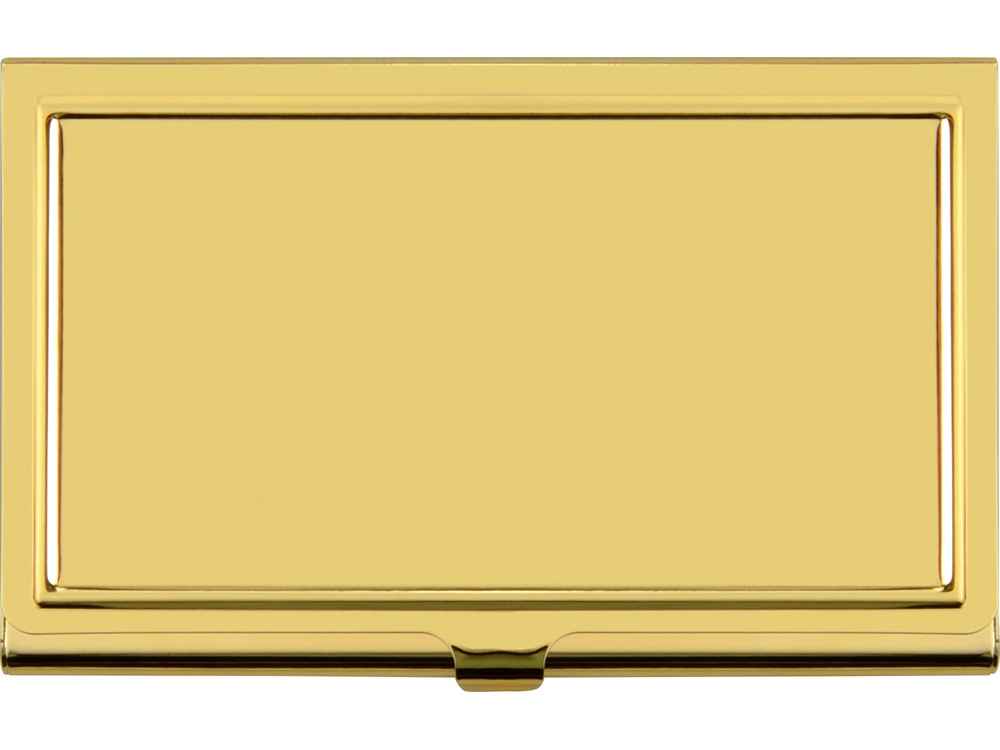 Стильная и элегантная металлическая визитница золотистого цвета подойдет в качестве презента как для мужчин, так и для женщин. На поверхности визитницы можно выгравировать поздравительную надпись или логотип организации.