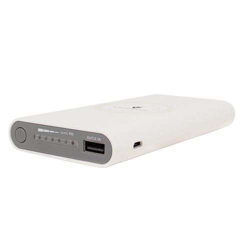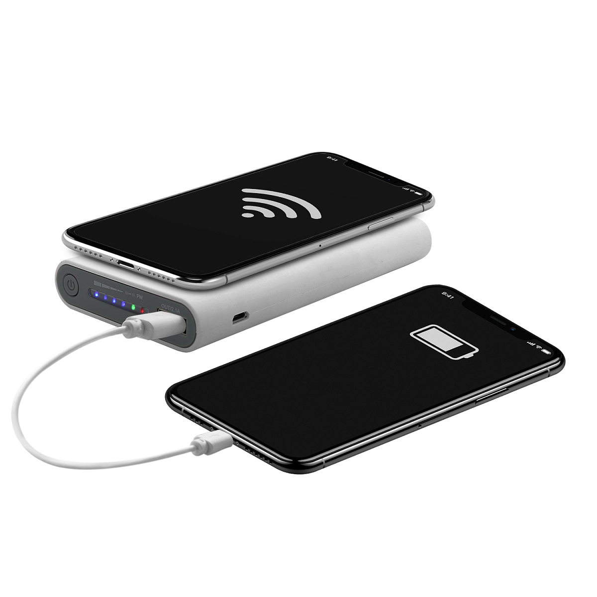 Внешний аккумулятор с функцией беспроводной зарядки для смартфонов по стандарту Qi.