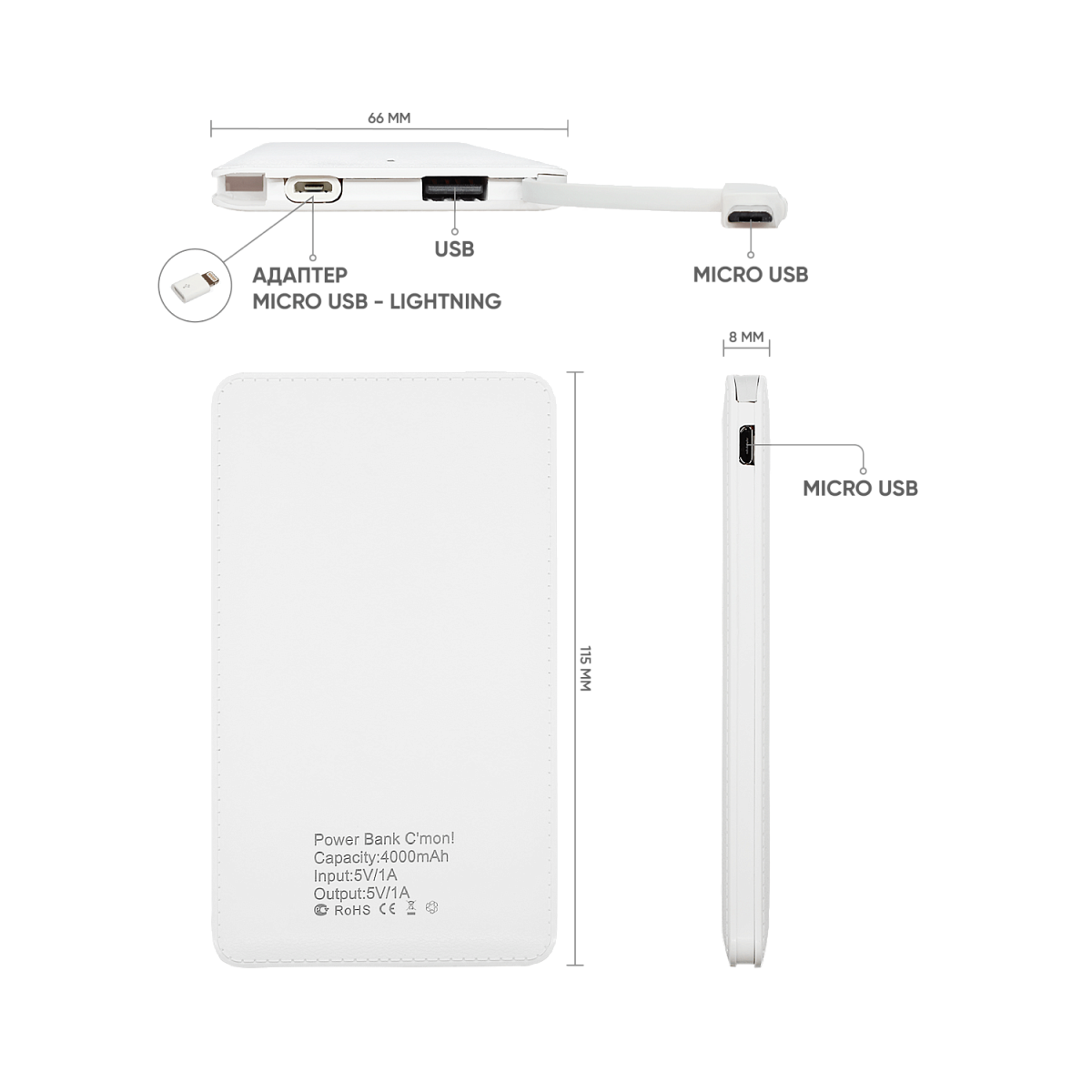 Внешний аккумулятор C'mon!, 4000 мАч (белый) можно заказать в нашей компании по самой доступной цене от 650 рублей.
