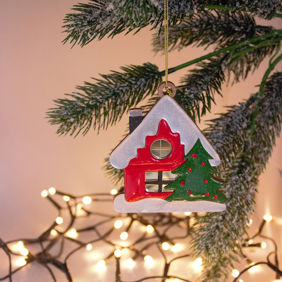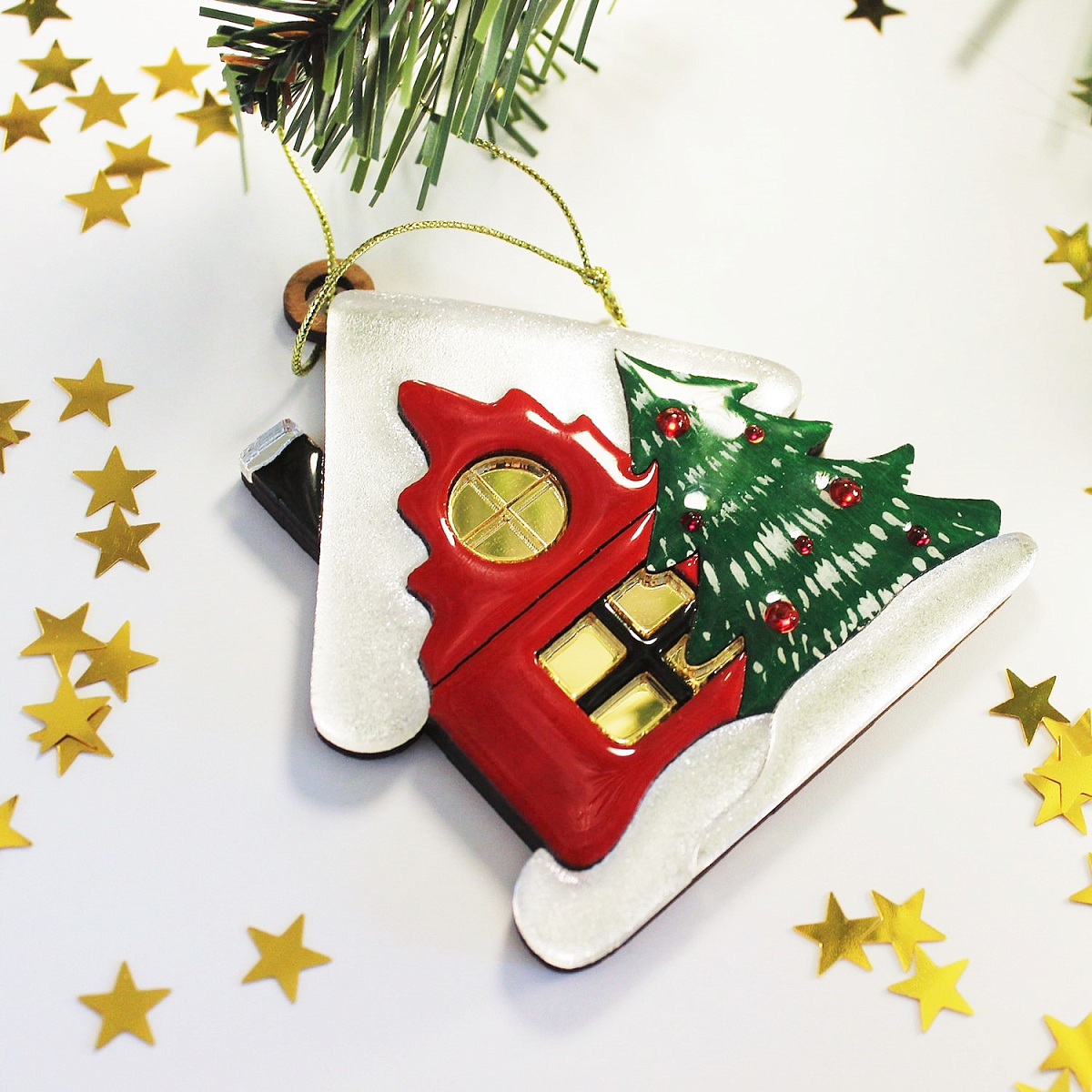 Елочная игрушка «Домик» — новогоднее украшение из коллекции "Русские сезоны", сделанное вручную российскими мастерами.