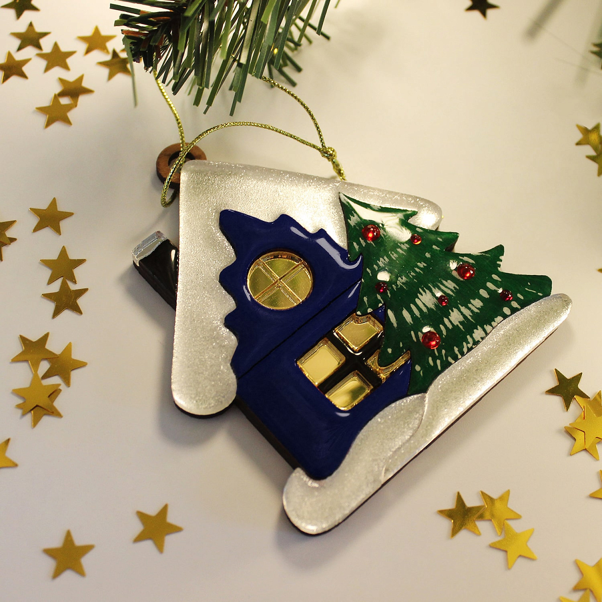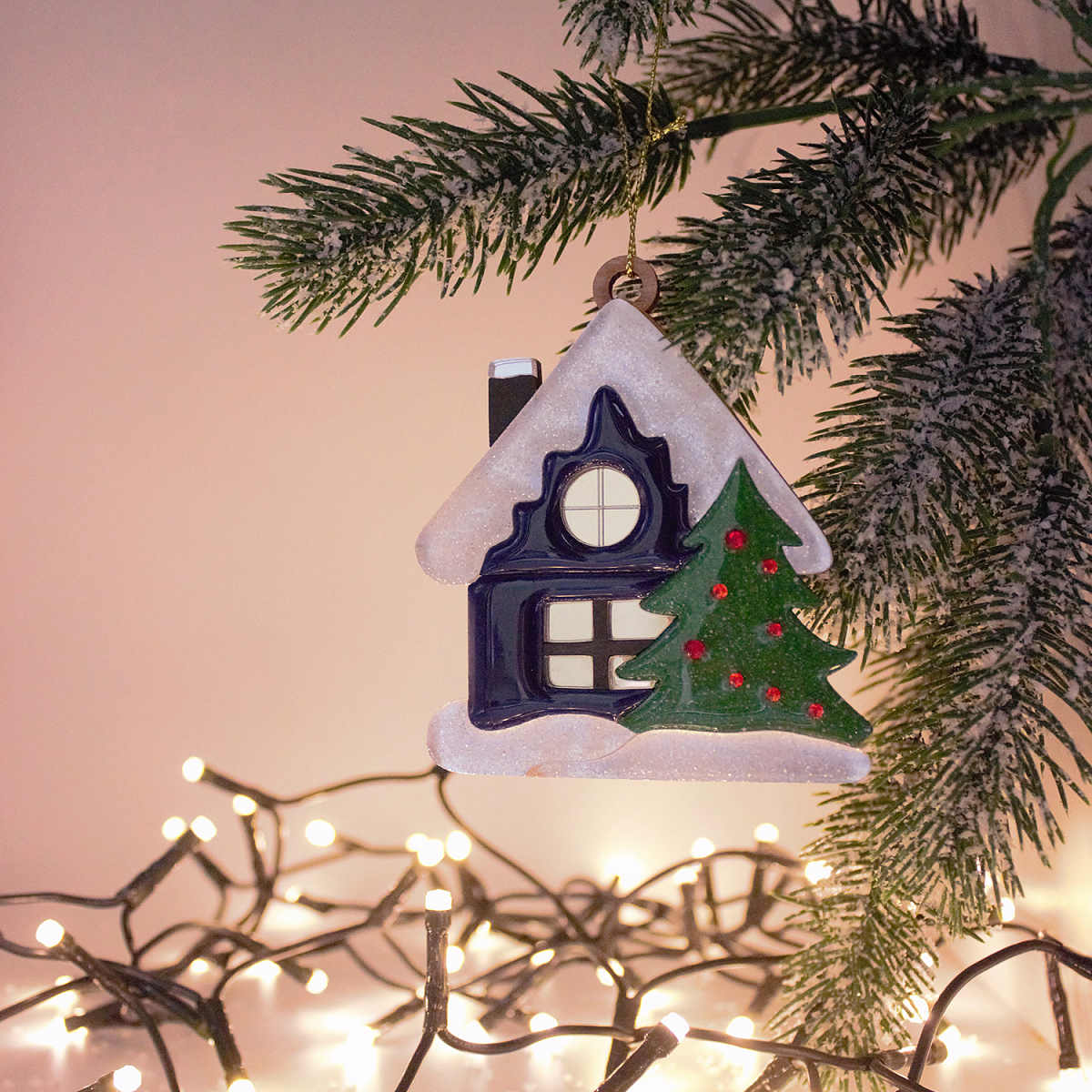 Елочная игрушка «Домик» — новогоднее украшение из коллекции "Русские сезоны", сделанное вручную российскими мастерами.
