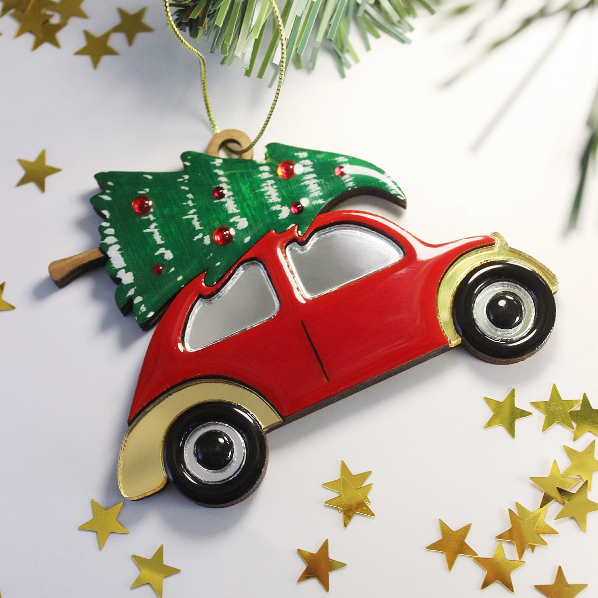 Елочная игрушка «Машинка» — новогоднее украшение из коллекции "Русские сезоны", сделанное вручную российскими мастерами.