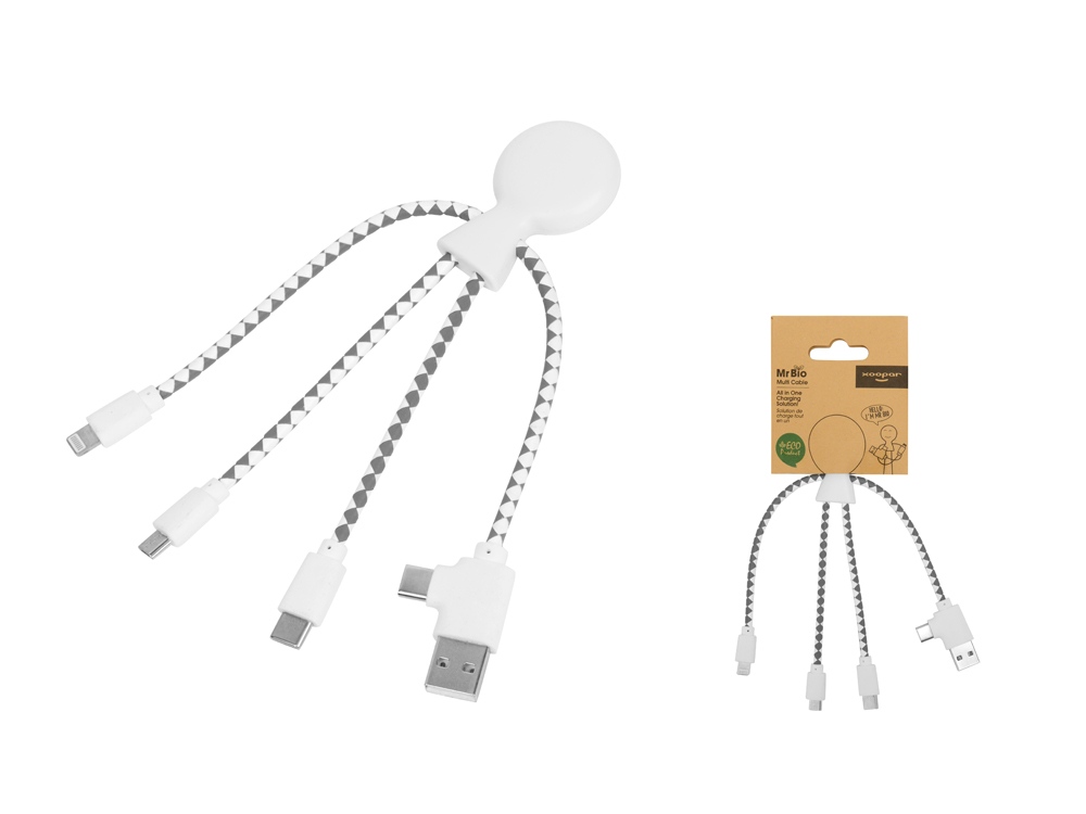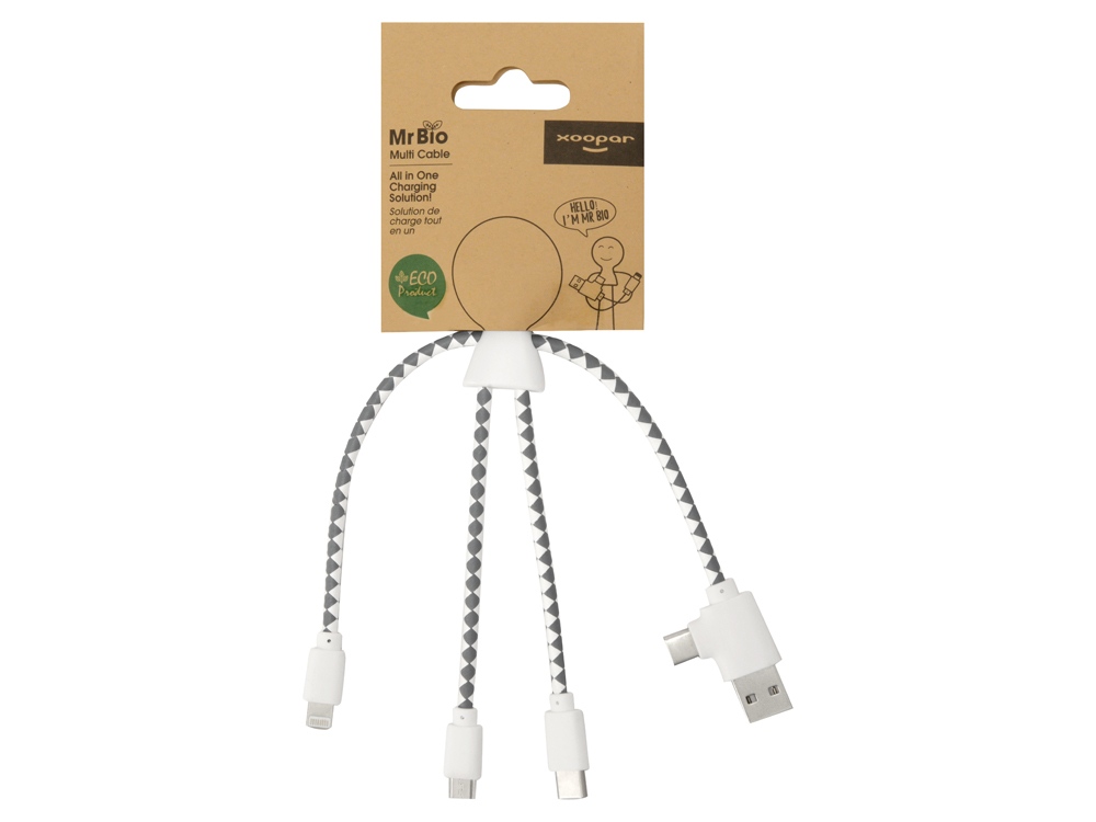 Mr. Bio - это зарядный кабель с несколькими адаптерами, который может зарядить практически любой современный гаджет. Кабель сделан с применением биоразлагаемых натуральных материалов, что является отличной альтернативой традиционным кабелям. Переходите на Mr. Bio для сокращения глобальных кабельных отходов!