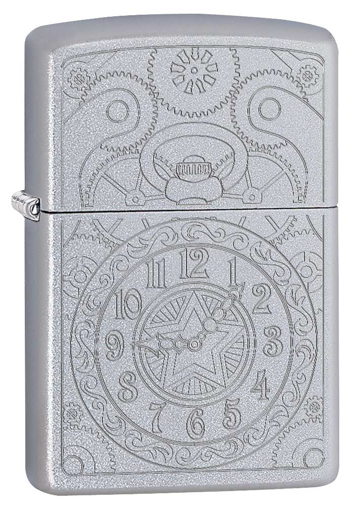 Зажигалка ZIPPO Clock с покрытием Satin Chrome, латунь/сталь, серебристая, матовая, 38x13x57 мм можно заказать в нашей компании по самой доступной цене от рублей.