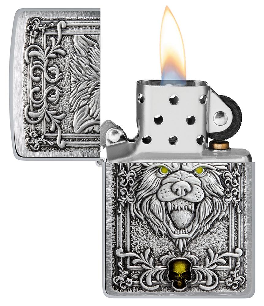 Зажигалка ZIPPO Wolf Emblem с покрытием Brushed Chrome, латунь/сталь, серебристая, 36x13x57 мм можно заказать в нашей компании по самой доступной цене от 11 320 рублей.