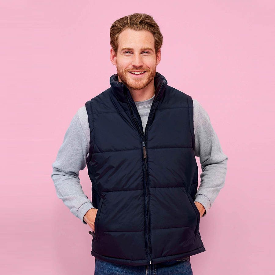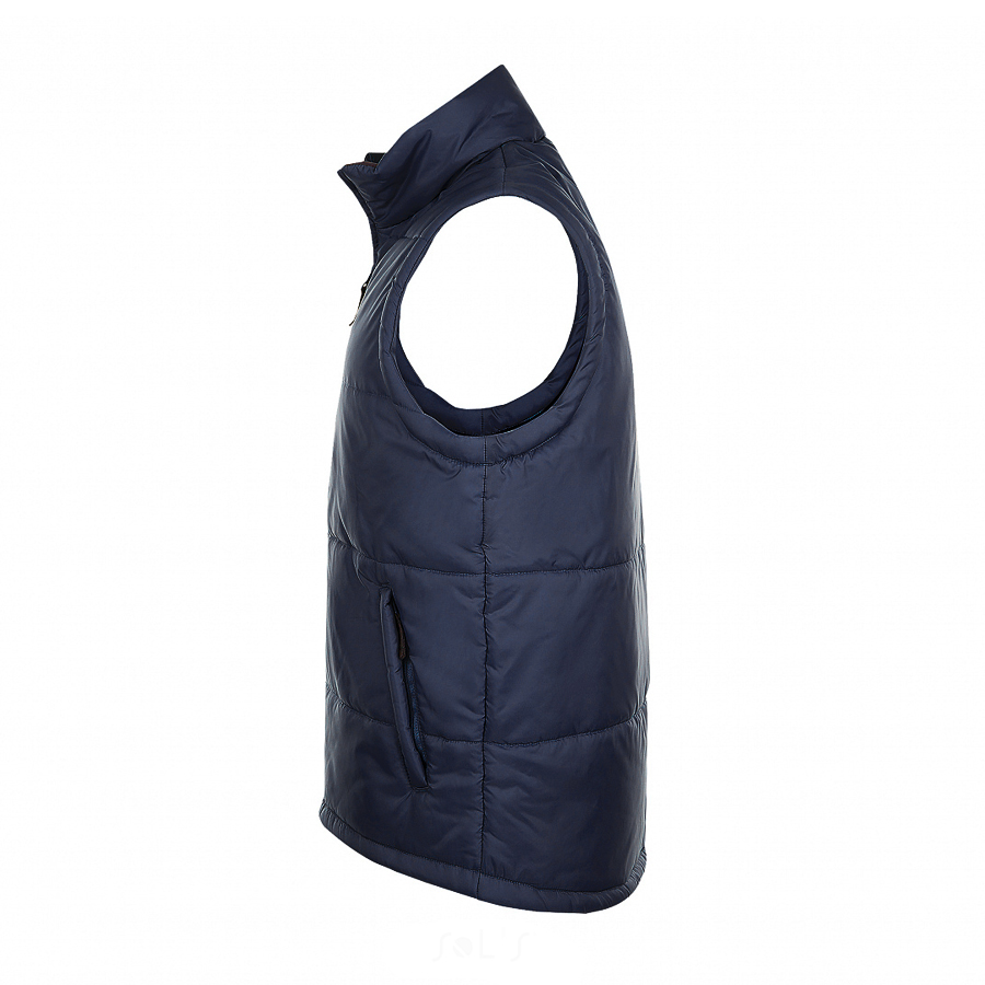 Жилет утеплённый WARM c контрастным подкладом и воротником-стойкойУтеплитель: синтепон, 220 г м²Верхний слой: нейлон с пропиткой от ветра и дождя, 210TЦентральная молния с чёрным пулером,Два наружных кармана на молнии,