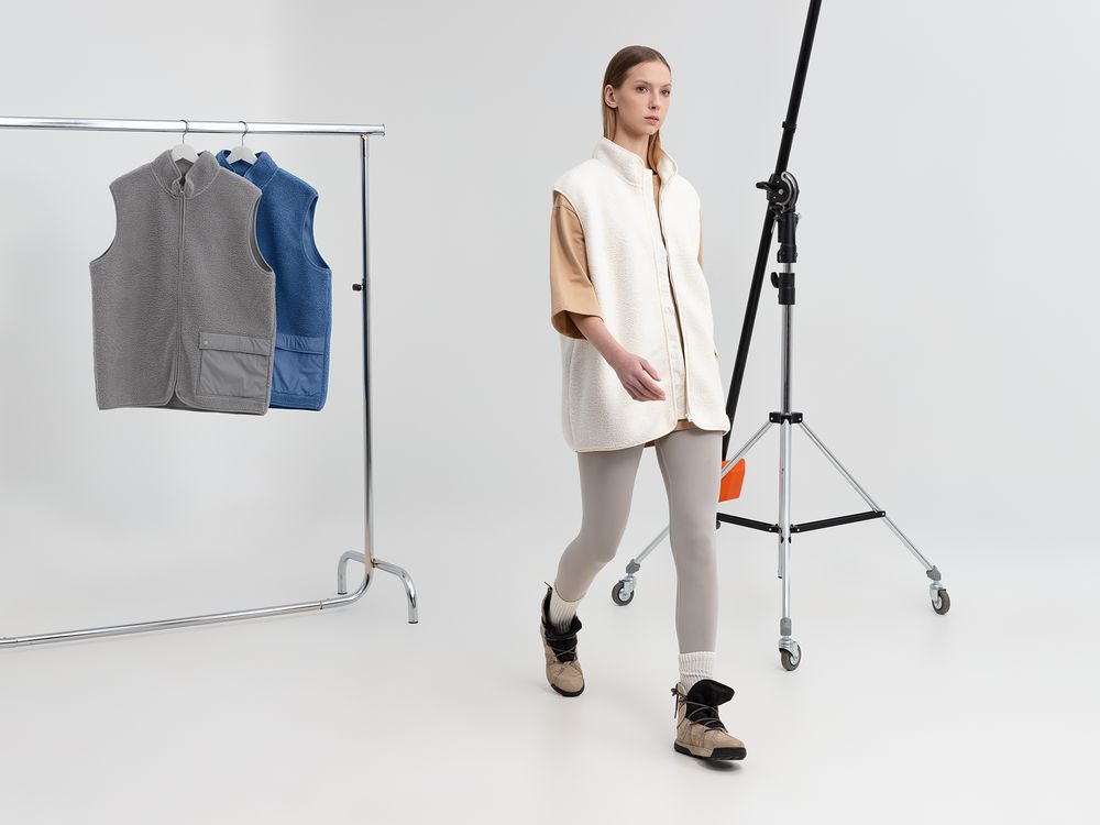 Жилет на молнии из современного двухслойного материала — модный искусственный мех снаружи и уютный флис внутри. Накладной карман из гладкого нейлона создает заметный визуальный контраст и делает жилет Oblako по-настоящему стильным предметом гардероба.
