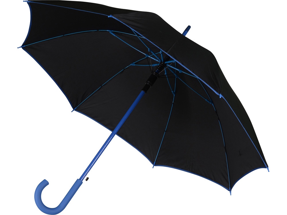 Стильный полуавтоматический зонт-трость защитит во время дождя, а в сложенном виде дополнит деловой образ. На внешнюю сторону купола зонта можно нанести любое изображение.