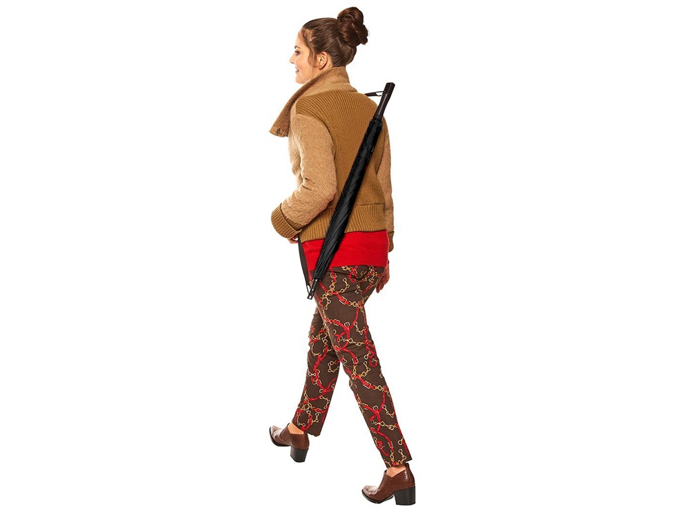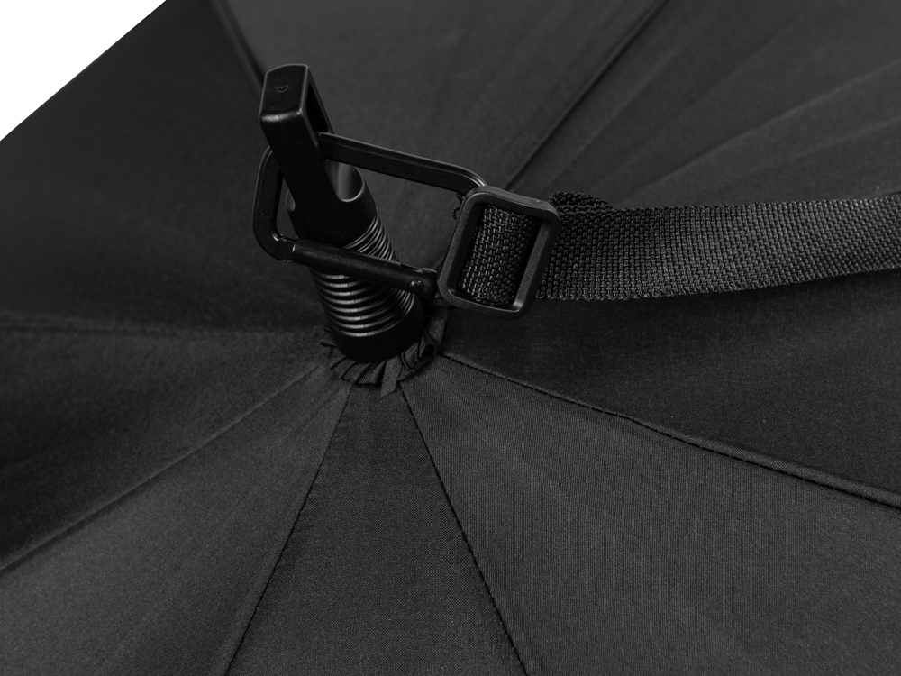 Неоспоримое удобство этого зонта в ремне для ношения на плече. Ремень можно отстегнуть, используя карабин.