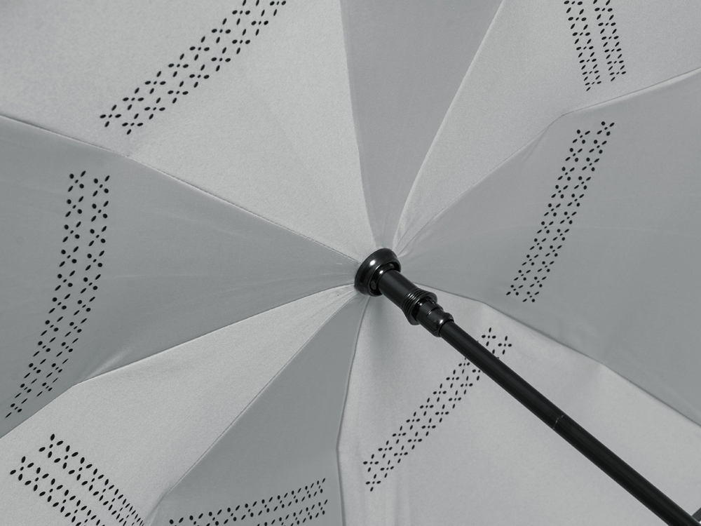 Зонт с обратным сложением складывается внутрь. Очень удобен в использовании, например, во время посадки в машину при складывании вода остается внутри купола. Для просушки зонт можно поставить вертикально на пол в сложенном виде, что позволяет воде стекать без раскрытия зонта. Двойной купол из 190Т эпонжа. Ручка с мягким покрытием soft-touch для большего комфорта.