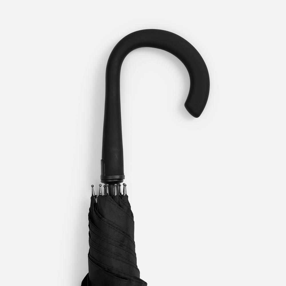 Современная модель зонта-трости с эргономичной ручкой, каркасом из стеклопластика и увеличенным размером купола.