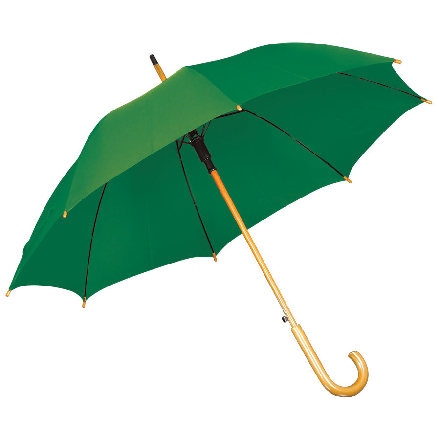 Зонт-трость с деревянной ручкой, полуавтомат; зеленый; D=103 см, L=90см; 100% полиэстер можно заказать в нашей компании по самой доступной цене от 943 рублей.