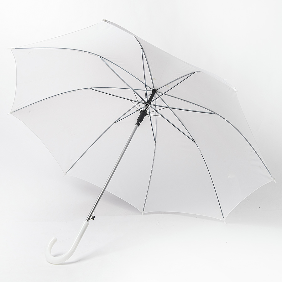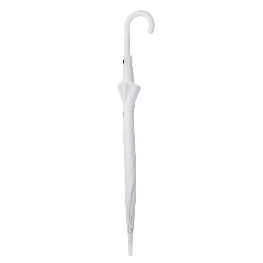 Зонт-трость, полуавтомат. Состав купола: 100% нейлон 190T. Диаметр купола: 103 см. Состав стержня: металл. Состав спиц: металл. Ручка: пластик. Цвет купола: белый.